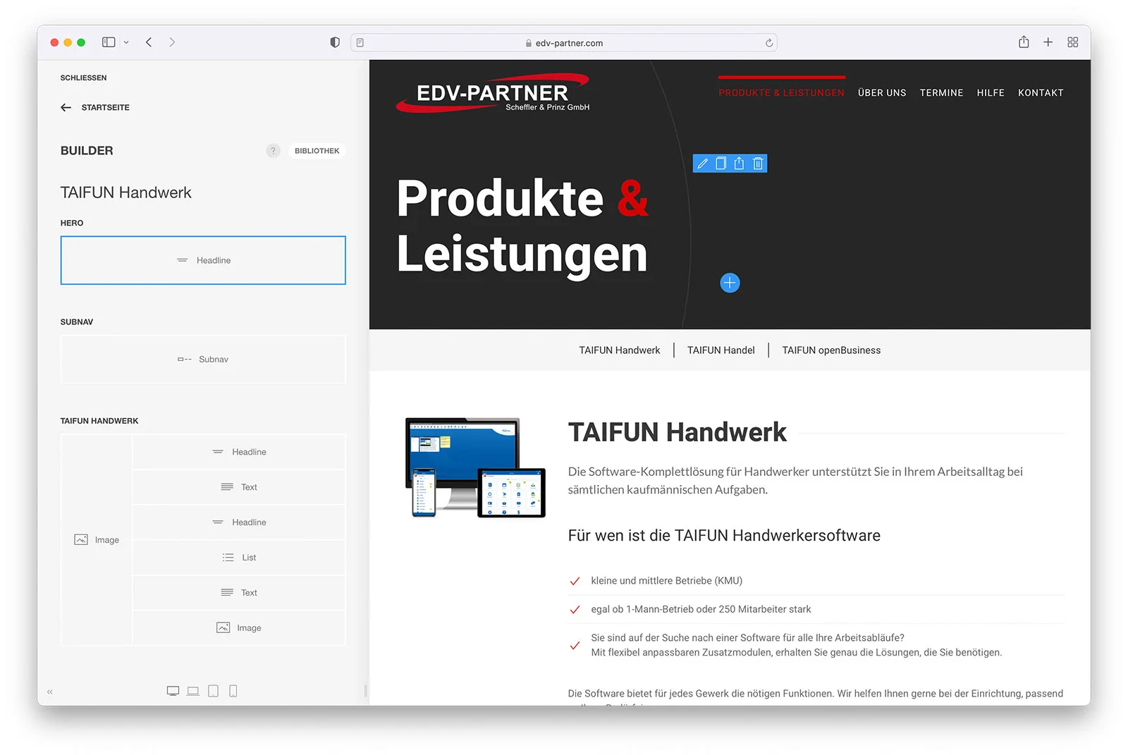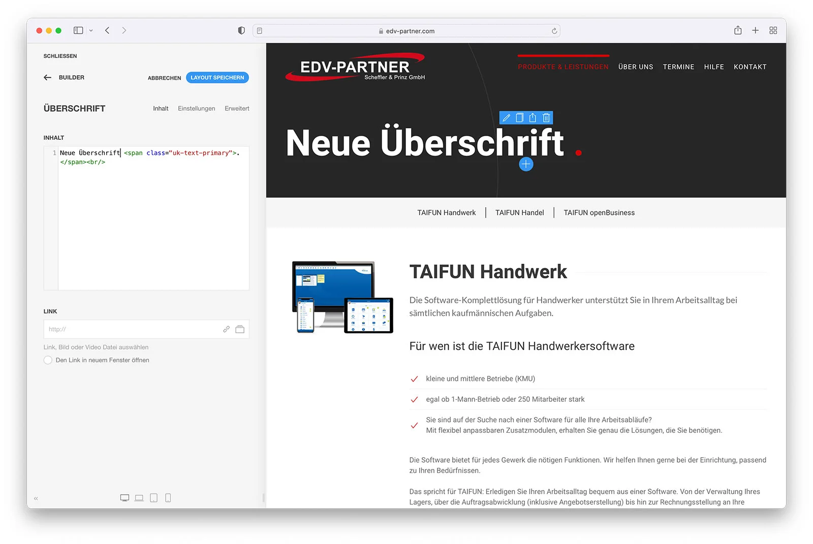 über unseren Homepage-Baukasten bieten wir Ihnen die Möglichkeit, auch ohne Programmierkenntnisse schnell und einfach neue Inhalte auf Ihre Homepage zu stellen.