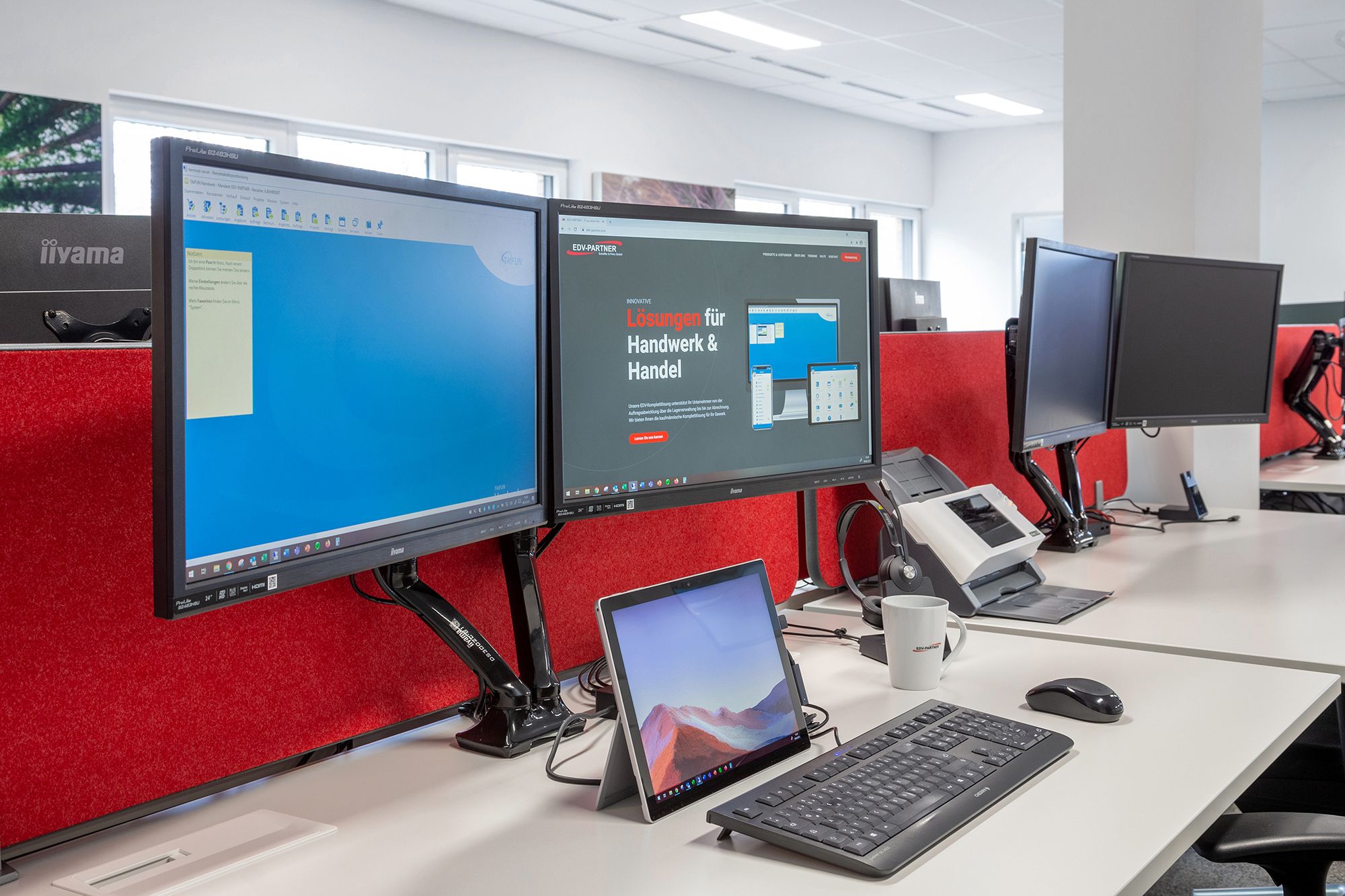 Sämtliche Mitarbeiter sind mit modernen Arbeitsplätzen ausgestattet, welche das Arbeiten auch im Homeoffice ermöglichen.